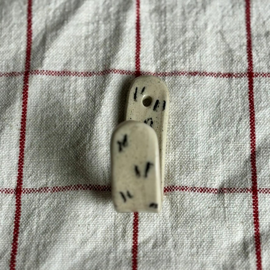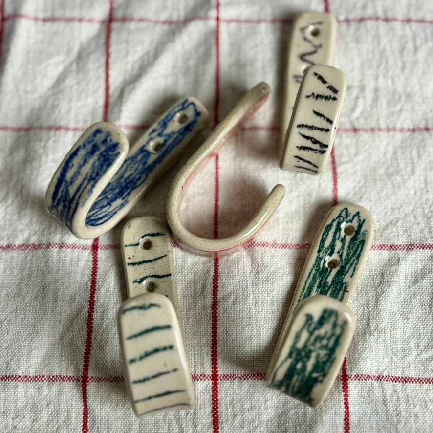 Hooks are handmade in my studio. Each has its own character and will vary slightly in size, shape and decoration.