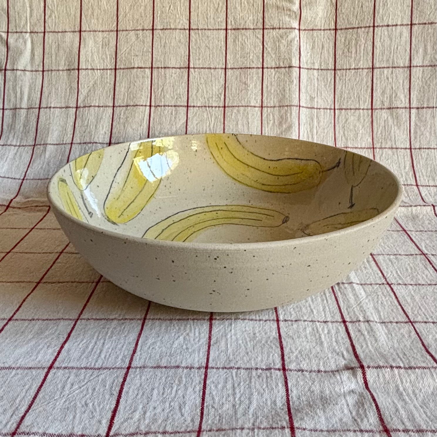 Share Dish. Perfect for summer salads or chips. Linen clay with a subtle speckle and hand scribbled bananas.