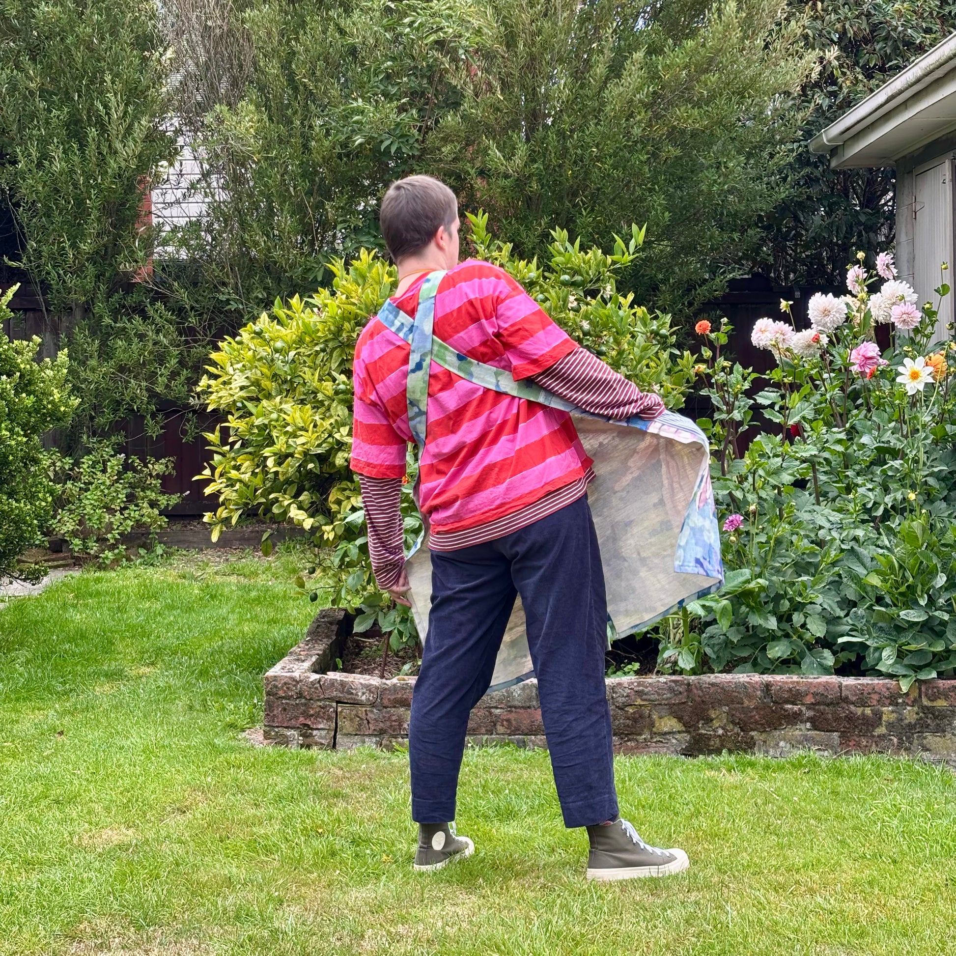 All aprons are handmade in my sewing nook, using collected natural fibre fabrics from my stash! Collected fabrics include second hand, vintage, offcuts, end of bolt or repurposed. I have developed my two favourite apron patterns over years of potting and don't enter my studio without one.