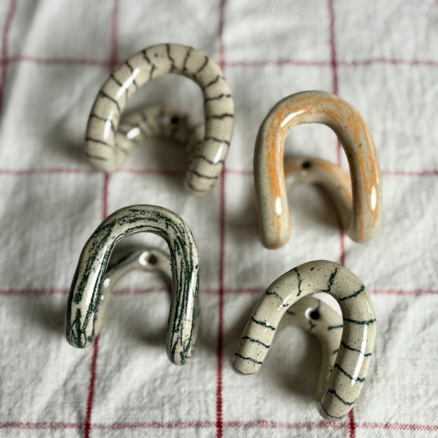 Hooks are handmade in my studio. Each has its own character and will vary slightly in size, shape and decoration.
